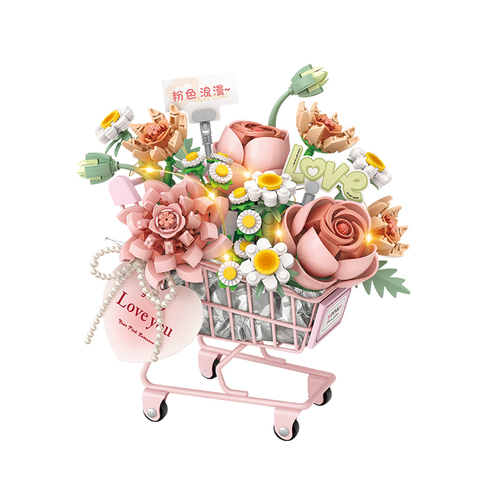 Blocs de construction éducatifs de la série de chariots à main 4124-4127 avec des fonctionnalités de fleurs et de lumière