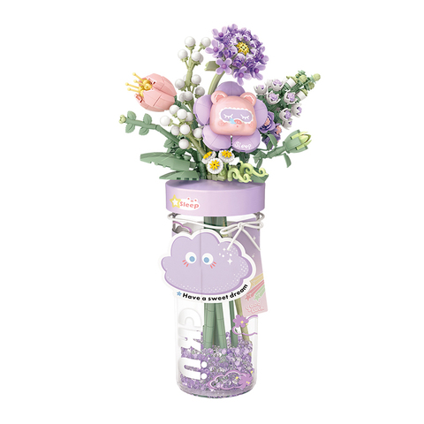 Pour Mini Blocs, Arrangement floral en pot de fleurs violettes en bouteille, 1391 pièces, Jouet de construction éducatif pour enfants en plastique ABS