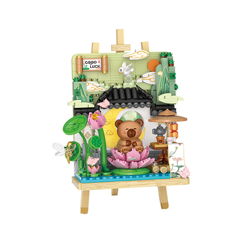 Pour LOZ Mini blocs 645 pièces ensemble de blocs de construction petit ours Lotus modèle jouet avec décoration d'assemblage de fleurs